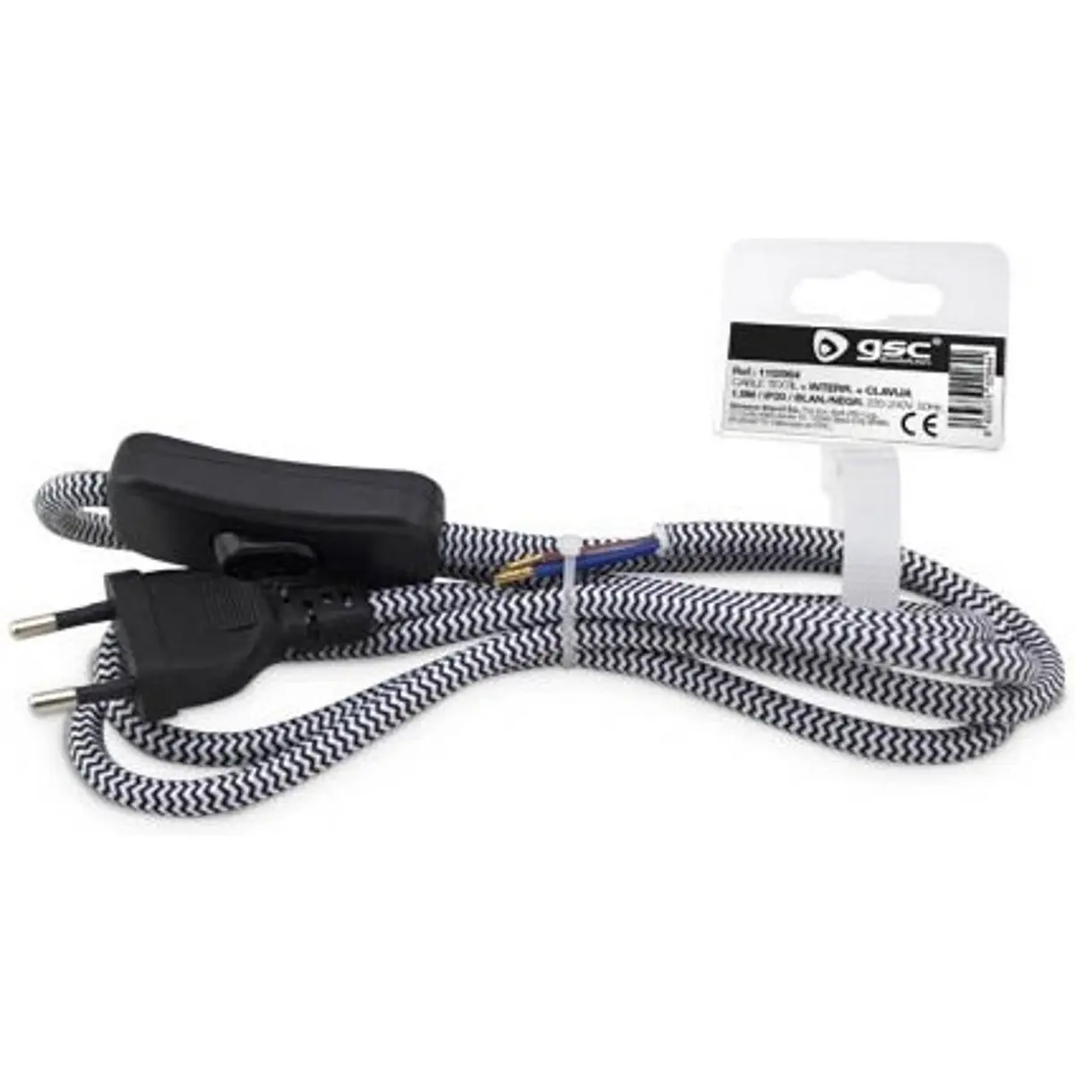 GSC Evolution 1102964 - Cabo têxtil (2x0.75mm) c/ interruptor e ficha Euro 1,5M - Preto/Branco
