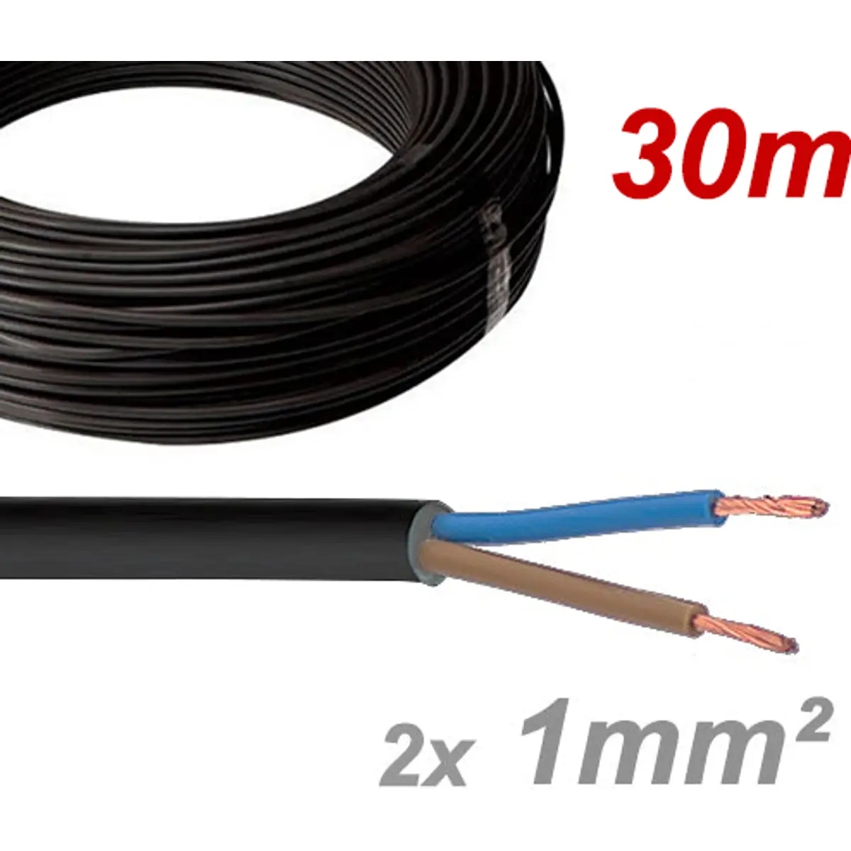 Cabo elétrico multifilar redondo FVV 2x1.0mm² preto - H05VV-F (rolo de 30m)