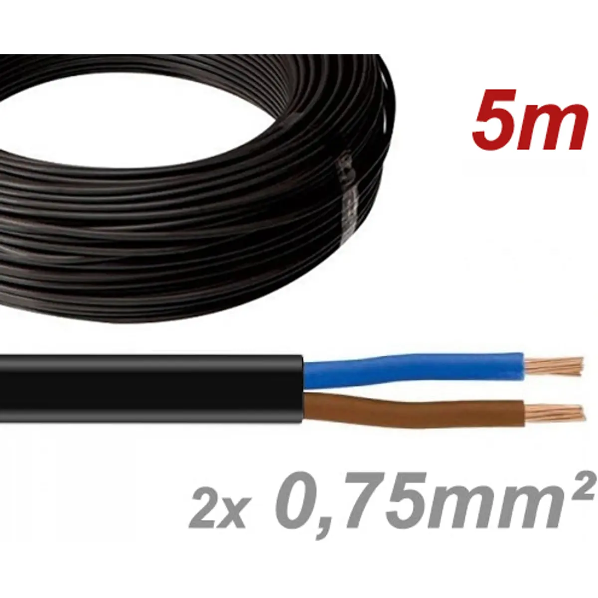 Cabo elétrico plano H03VVH2-F 2x0.75mm² Preto (rolo de 5m)