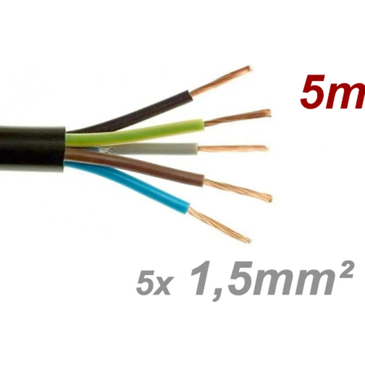 Cabo elétrico multifilar redondo FVV 5x1.5mm² preto - H05VV-F 5G1.5 [rolo 5m]