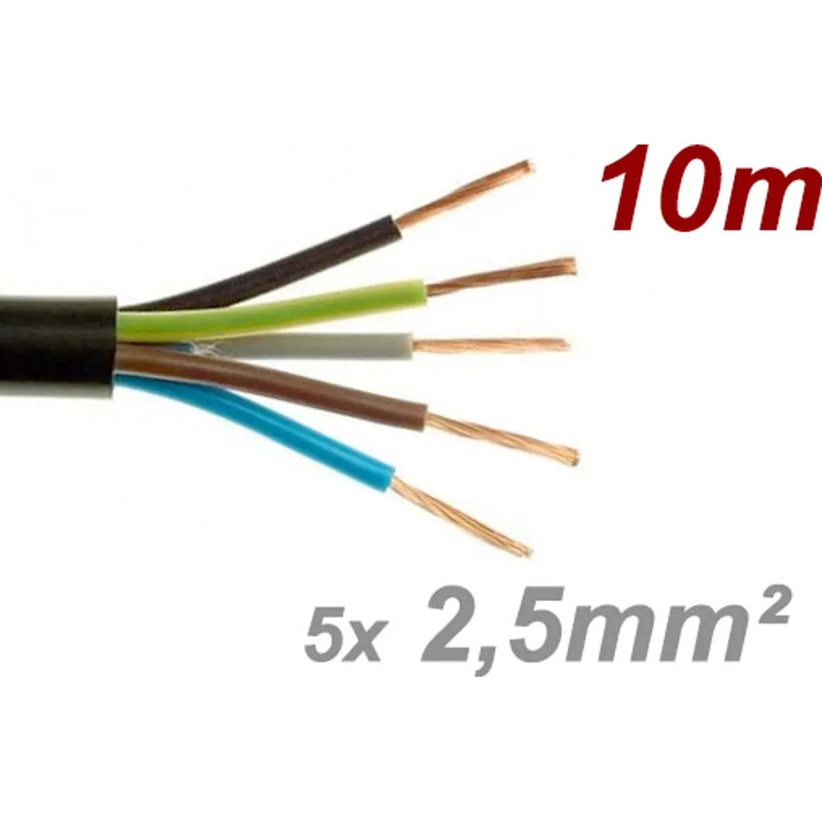 Cabo elétrico multifilar redondo FVV 5x2.5mm² preto - H05VV-F 5G2.5 [rolo 10m]