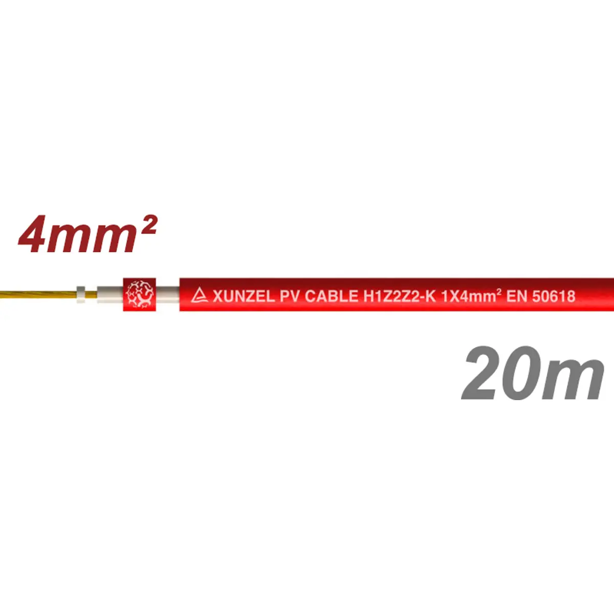 Xunzel - Cabo de energia Solar (H1Z2Z2-K) 4mm² c/ isolamento duplo - Vermelho (+) - 20m