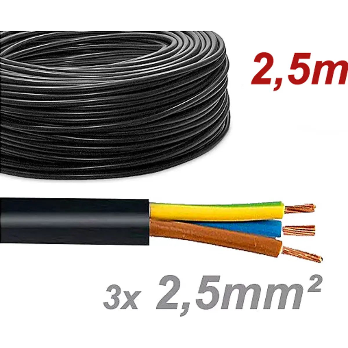 Cabo elétrico multifilar redondo FVV 3x2.5mm² preto - H05VV-F 3G2.5 (rolo de 2.5m)