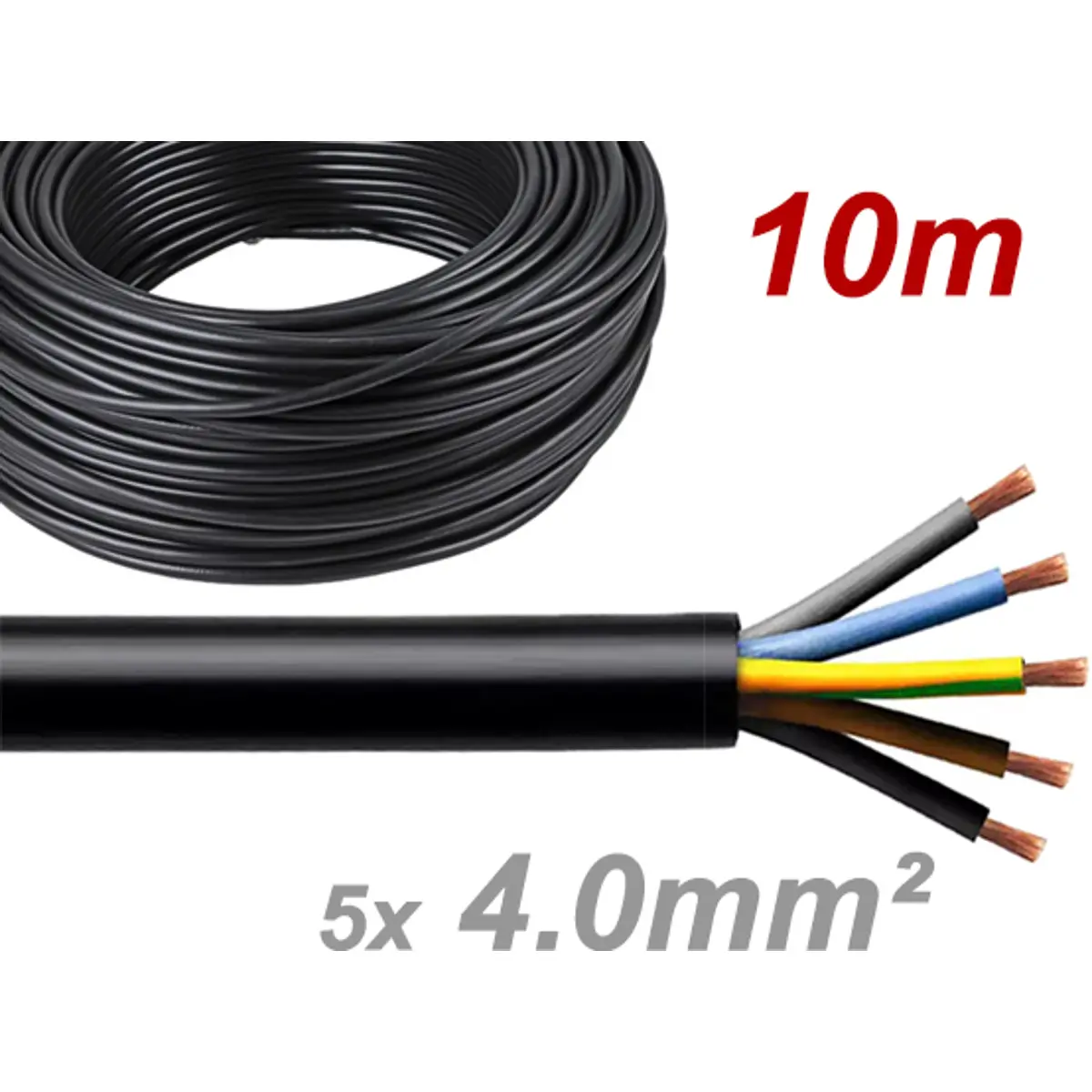 Cabo elétrico multifilar redondo RV-K 5x4mm² 0,6/1KV preto - (rolo de 10m)