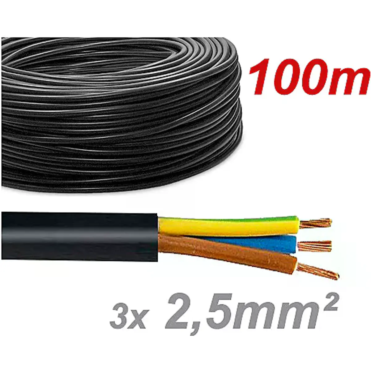 Este cabo elétrico multifilar de baixa tensão possui três condutores de 2,5 mm² em cobre, com isolamento exterior Preto, suportando até 0,6/1 kV. Ideal para ligações industriais, derivações e distribuição interna, pode ser instalado em ambientes interiores ou exteriores, em tabuleiros de cabo descobertos, tubos e enterrados. Extremamente flexível, facilita instalações complexas e trabalhos em condições difíceis. O rolo tem 100 metros de comprimento, adequado para uso em instalações permanentes.