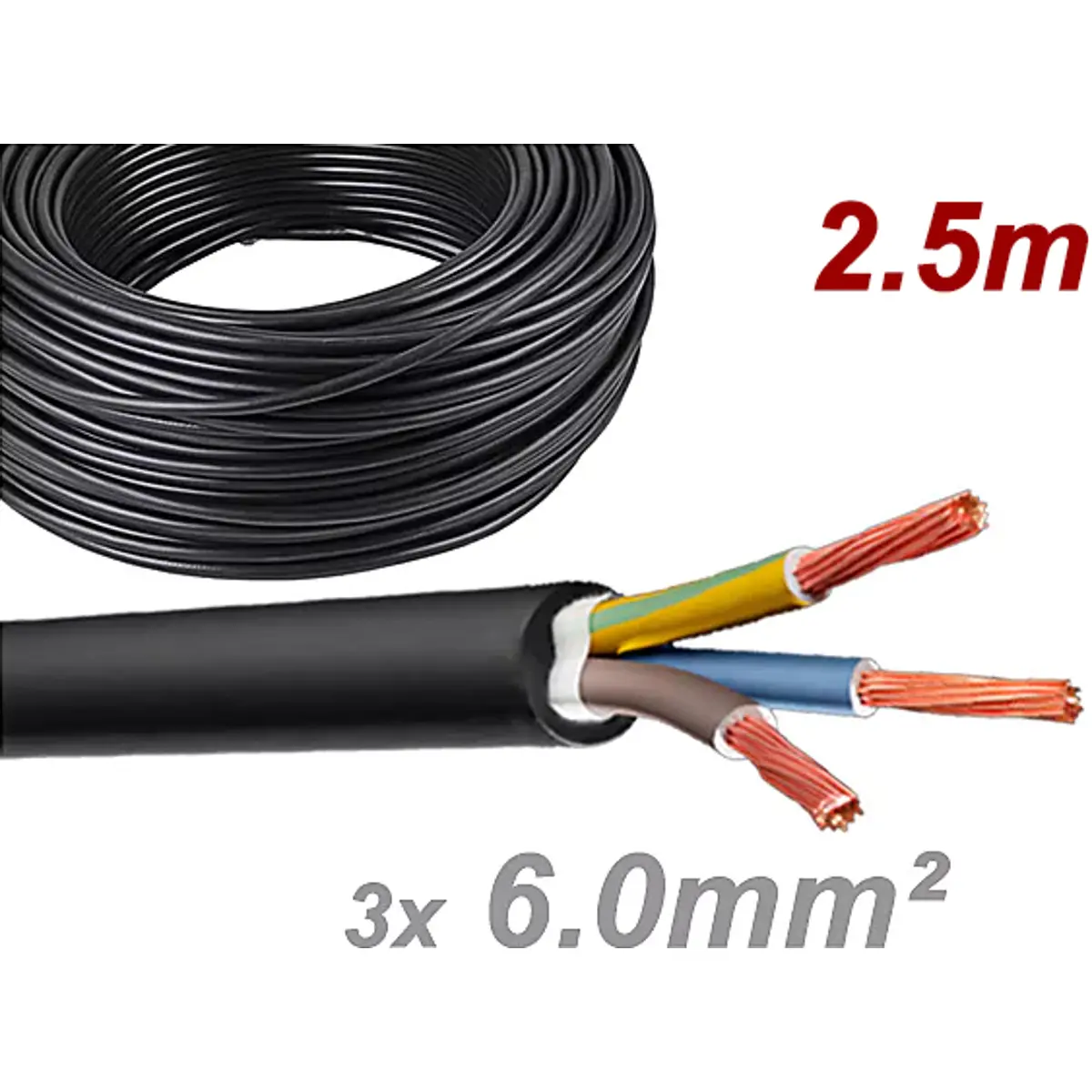 Cabo elétrico multifilar redondo RV-K 3x6mm² 0,6/1KV preto (rolo 2.5m)