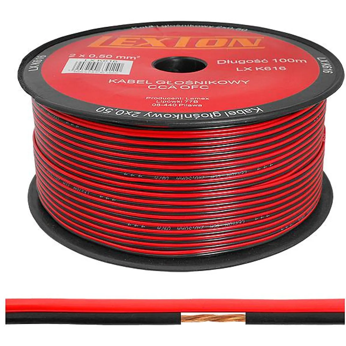 Lexton - Fio de coluna vermelho/preto 2x0.50mm² CCA (OFC) - 100m