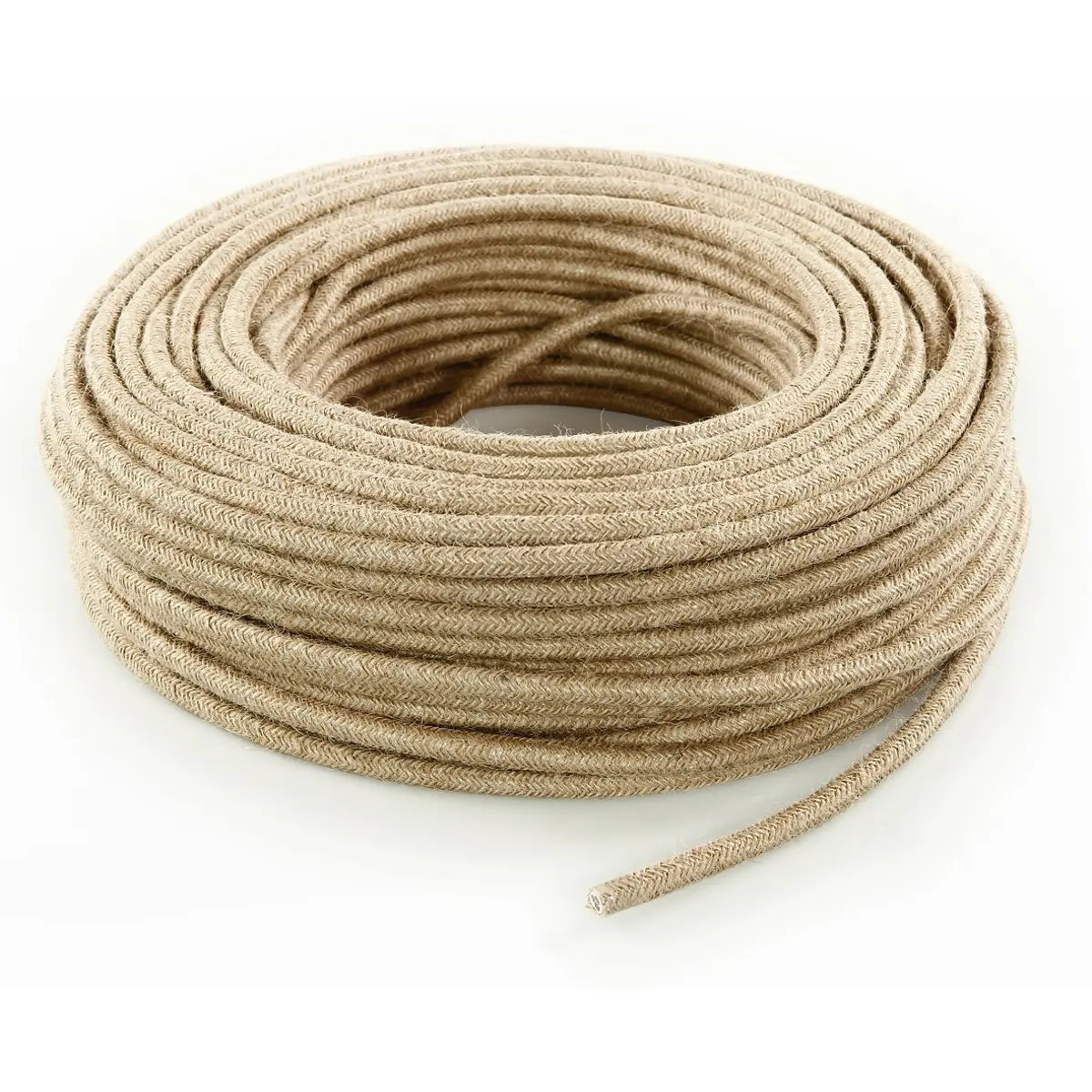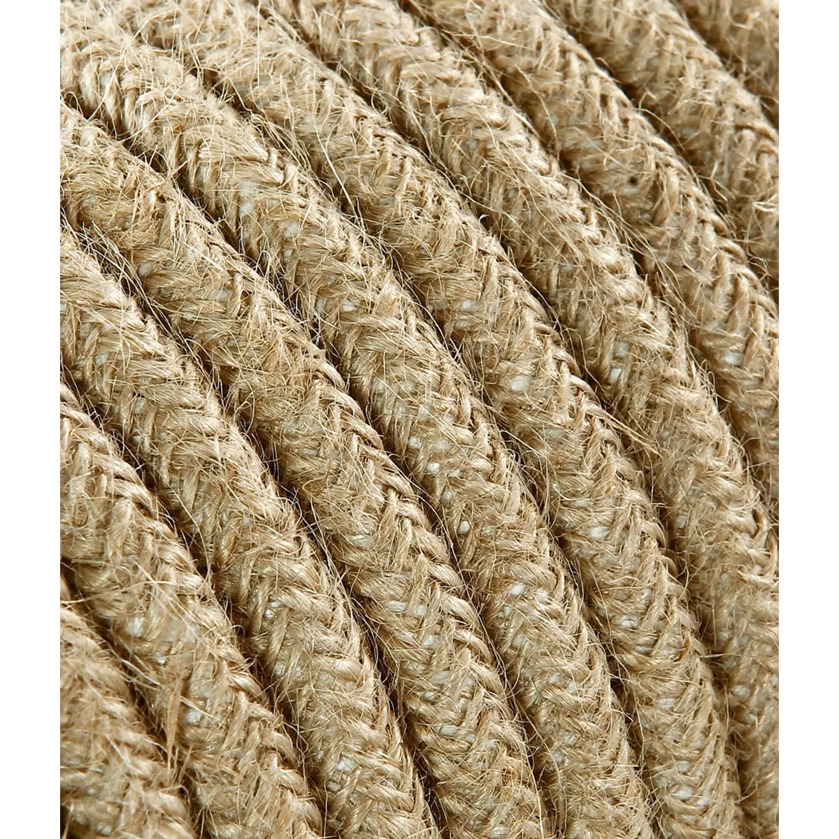 Cabo flexível com revestimento têxtil tipo corda de juta, ideal para projetos de iluminação decorativa em ambientes interiores. Combina estética rústica com funcionalidade, sendo indicado para instalações móveis no interior de habitações. É especialmente utilizado na cablagem de candeeiros suspensos, luminárias vintage e outros dispositivos de iluminação.