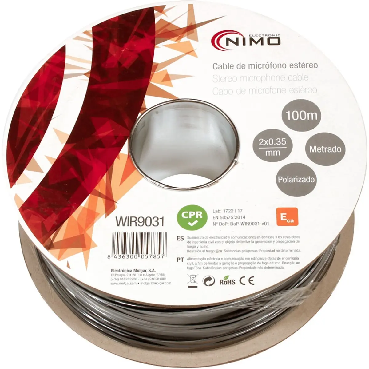 Nimo WIR9031 - Cabo de microfone 2 condutores + 1 malha [2x0,35mm²] 100m