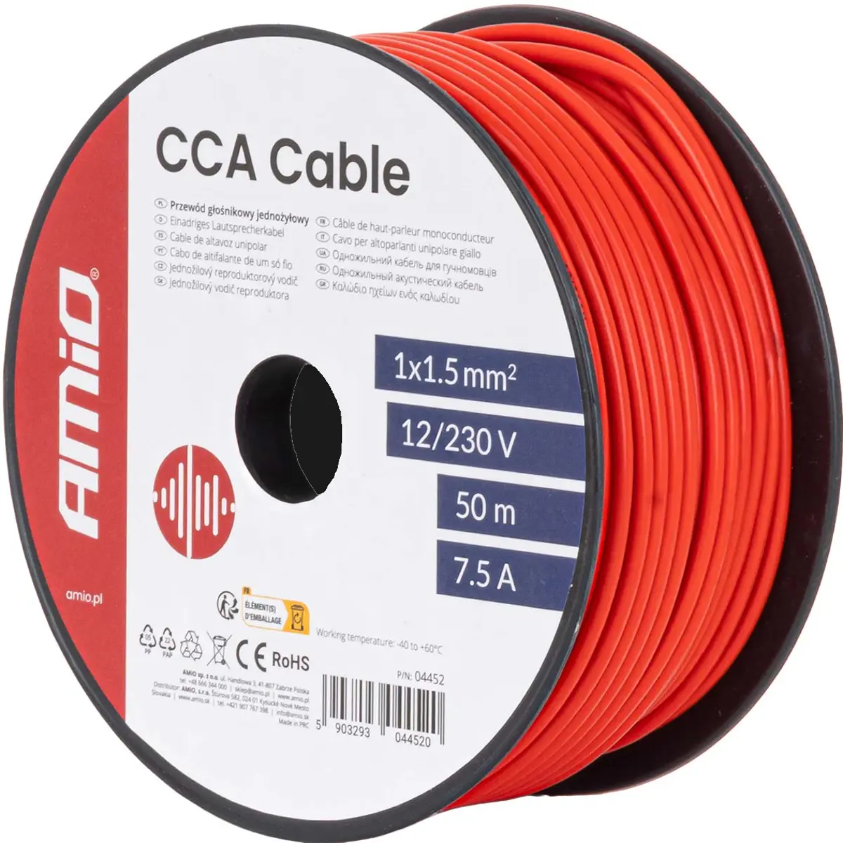 Cabo de instalação multifilar em CCA (alumínio revestido a cobre), ideal para pequenas instalações elétricas de baixa e média tensão. Com secção de 1x1,5 mm², garante funcionamento seguro até 7,5 A. O rolo de 50 m permite uma utilização económica em habitações, veículos e pequenos projetos industriais. O isolamento em vermelho facilita a identificação rápida durante a instalação, enquanto a flexibilidade da capa torna o manuseamento prático mesmo em locais de difícil acesso.