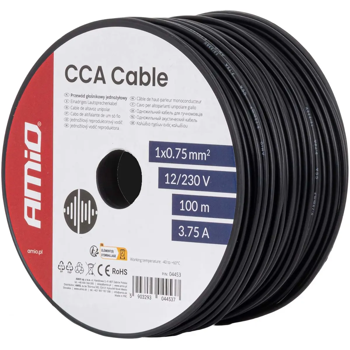 AMiO - Bobine de fio CCA multifilar 1x0.75mm² - preto - 100m