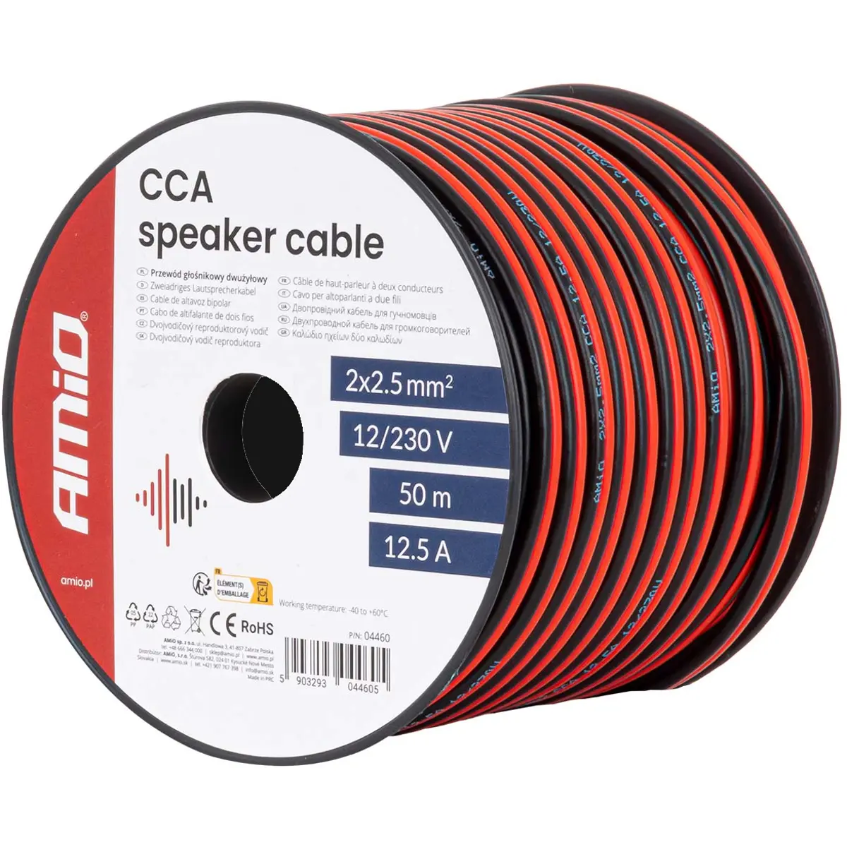 Cabo de coluna de 2 condutores fabricado com tecnologia CCA (alumínio cobreado), concebido para instalações de áudio profissionais. A sua secção de 2x2,5 mm² assegura baixa resistência e transmissão estável do sinal sonoro, proporcionando elevada qualidade de audição. A flexibilidade do cabo facilita a instalação em sistemas domésticos, automóveis e de palco, garantindo desempenho fiável em diferentes aplicações.
