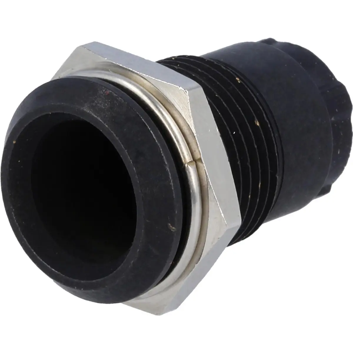Suporte metálico para LED de 10 mm, para fixação em painel. Tipo côncavo, com tampa de plástico, acabamento preto. Diâmetro de montagem de 14,2 mm, adequado a LEDs de 10 mm. Ideal para instalações em painéis, oferecendo montagem estável e discreta com resistência do material.