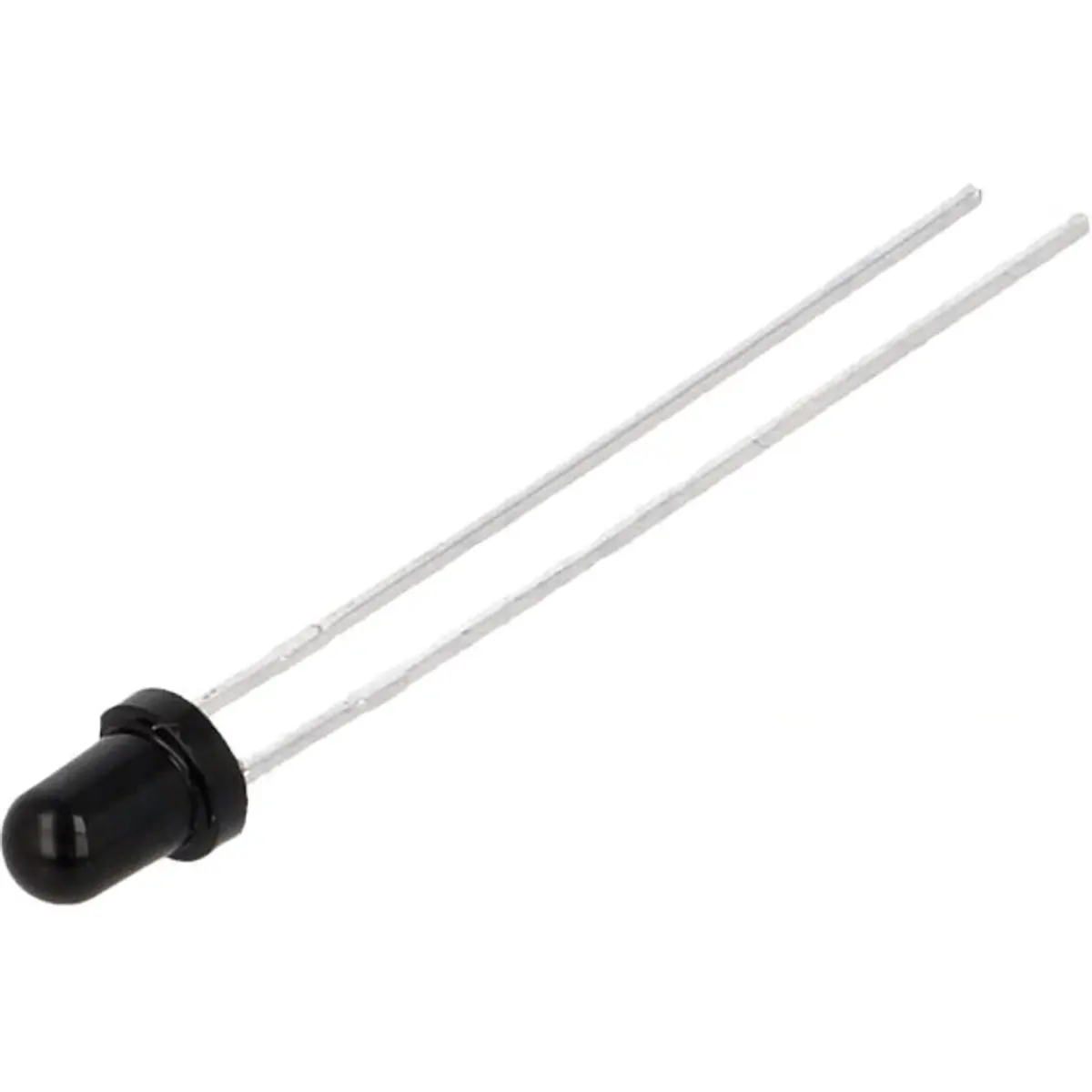 Fototransistor fotorreceptor com ângulo de visão de 20°, comprimento de onda de sensibilidade de 940 nm e lente preta com diâmetro de 3 mm. Corrente escura de 100 nA e tensão coletor-emissor até 30 V. Montagem em THT. Adequado para deteção de luz em sensores ópticos, automação e controlo de iluminação, convertendo radiação infravermelha em sinal elétrico estável para circuitos de leitura.