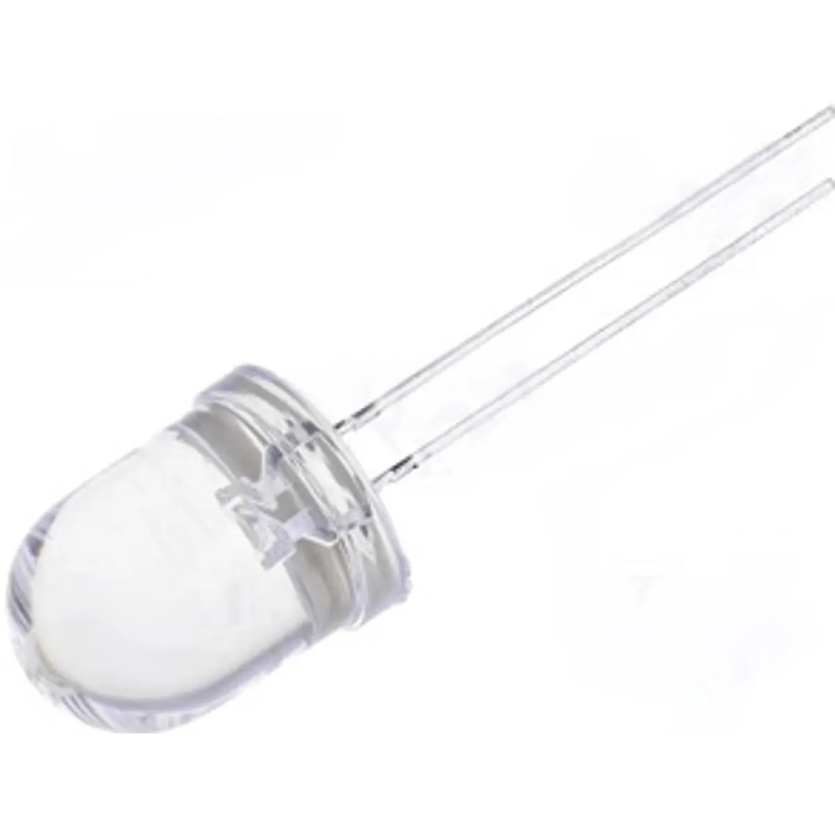 LED amarelo de 10 mm com lente transparente oferece luminosidade entre 50.000 e 60.000 mcd, ângulo de visão de 8 graus e corrente de 20 mA. Opera entre 1,8 e 2,6 V, com montagem THT e frente convexa. Compatível com terminais de 2,54 mm, adequado para sinalização, indicadores luminosos e aplicações em PCB, com fácil integração em projetos eletrónicos.