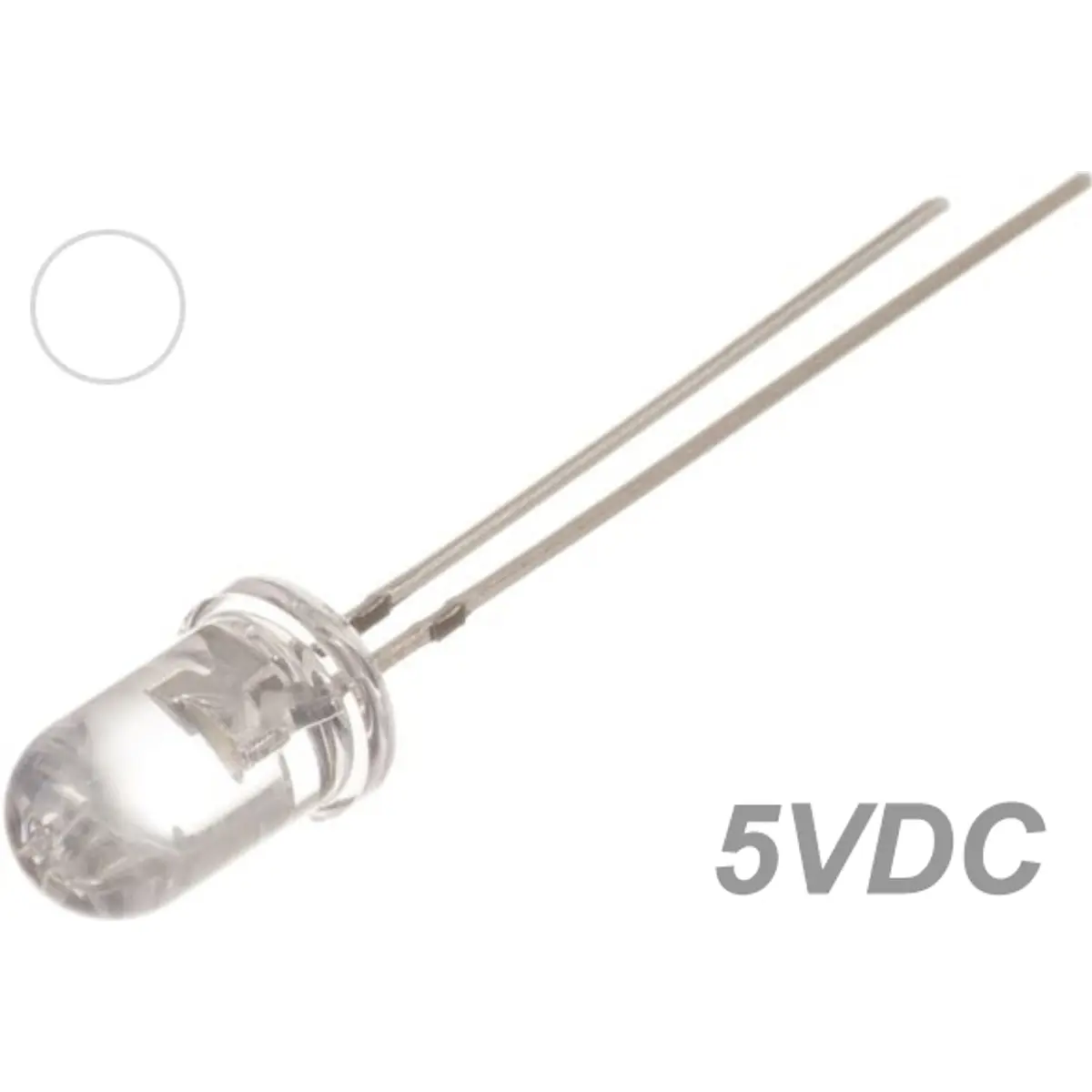 Optosupply OSW5DK5A31A-5V - LED 5mm transparente branco 3000..4200mcd 30º 5V