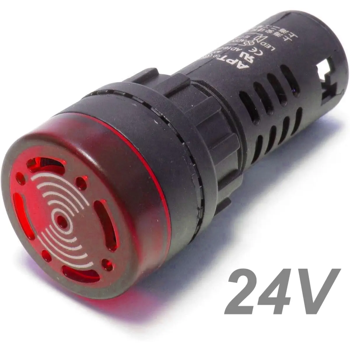 Sinalizador luminoso intermitente com buzzer Ø22mm - Vermelho - 24V