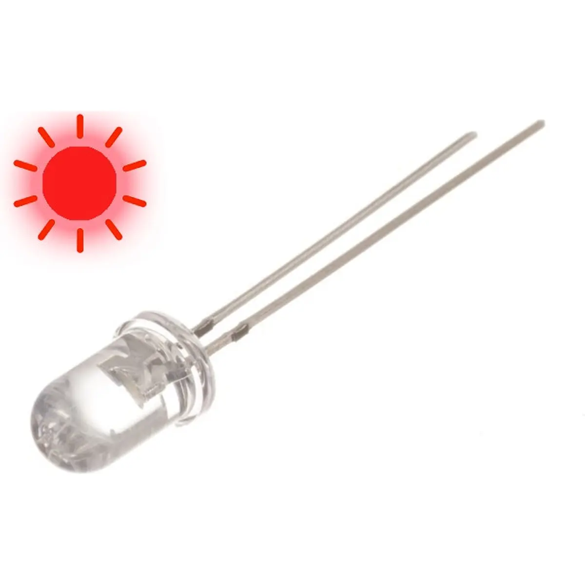 LED 5mm transparente vermelho alto-brilho 22500mcd