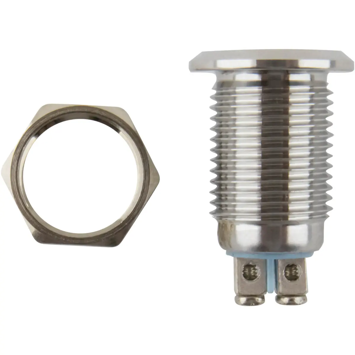 O indicador LED em aço inoxidável com iluminação vermelha funciona com alimentação de 6-24V DC e oferece proteção IP67, adequado para ambientes húmidos. Possui diâmetro de montagem Ø12mm e rosca M12, com contraporca e anel de vedação incluídos para uma instalação estanque. Ideal para painéis industriais, máquinas e sistemas que exigem visibilidade de status resistente e confiável.