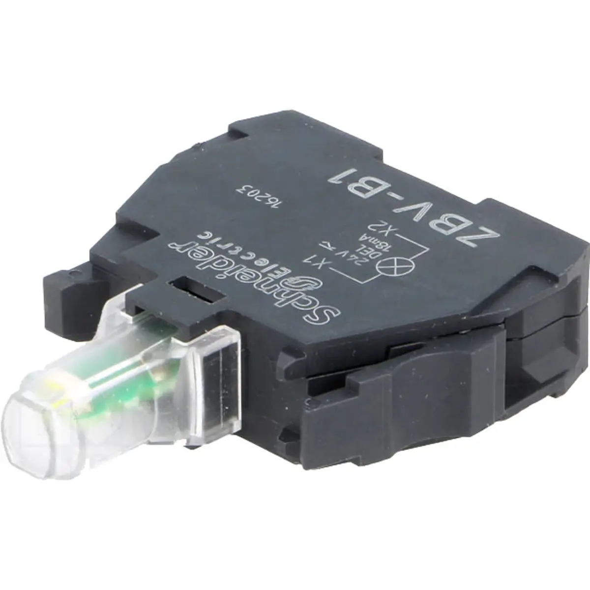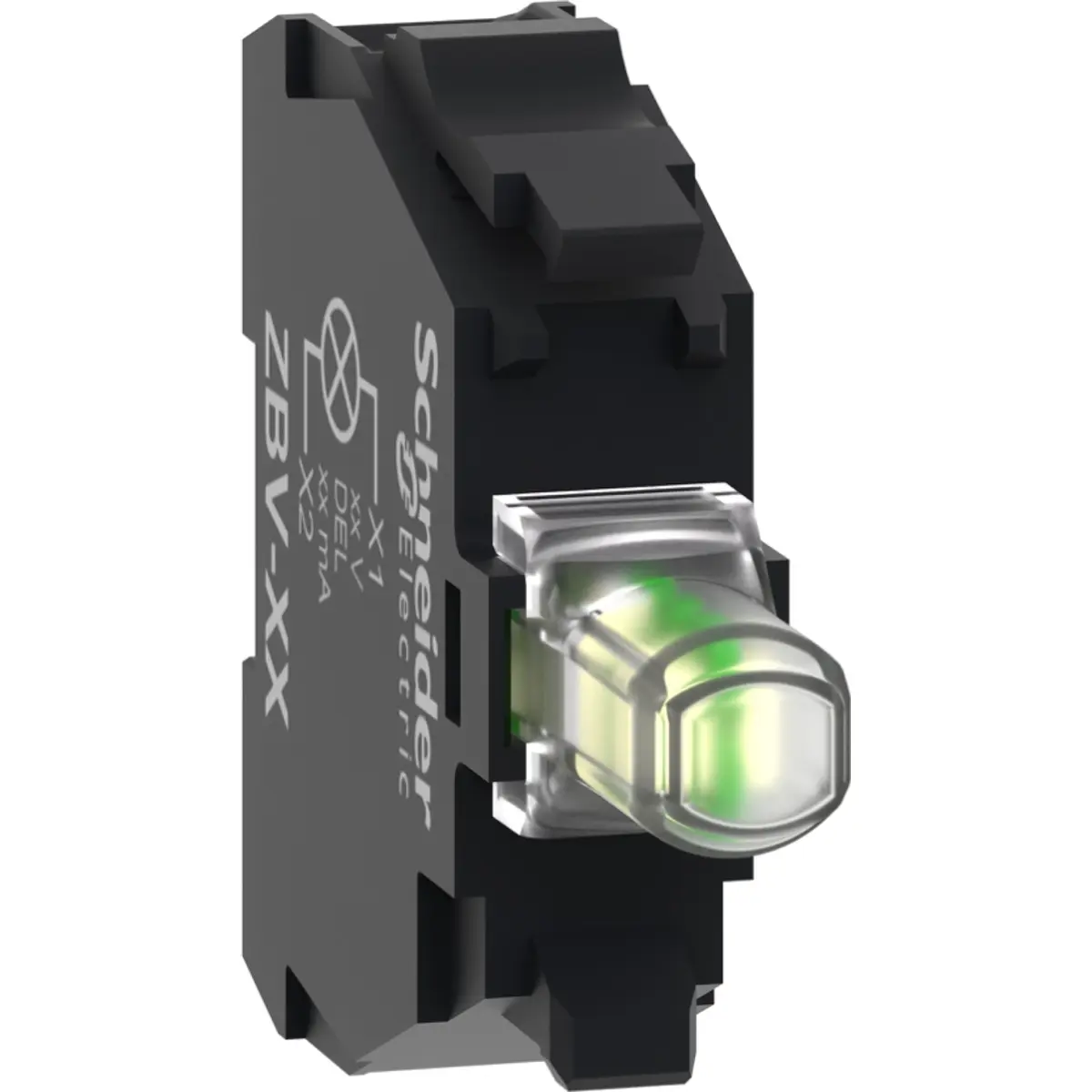 Bloco de luz LED universal para a iluminação de sinalizadores, botões ou seletores das séries Harmony XB4 e XB5. Com terminais de parafuso e tensão de alimentação de 24V AC/DC.