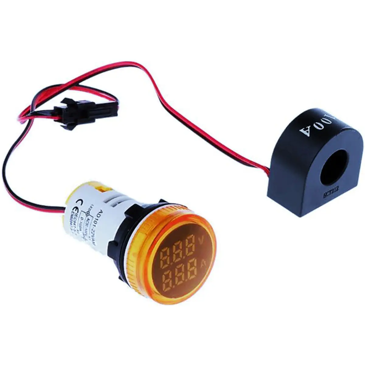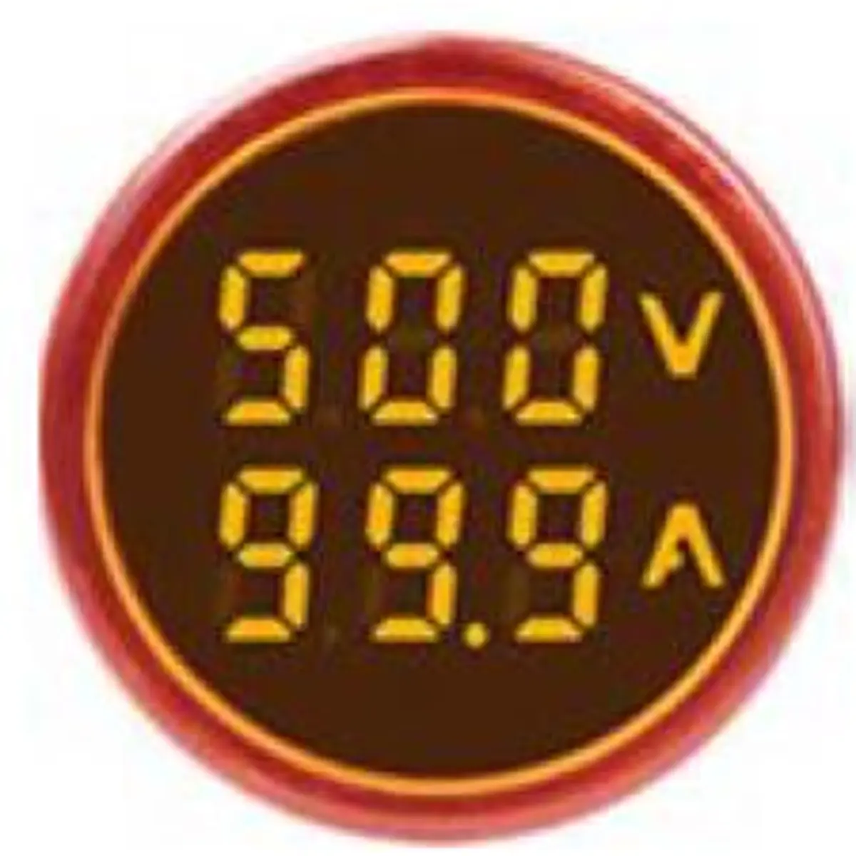 Sinalizador LED amperímetro 0-100A + Voltímetro 50-500V AC - Ø22mm - amarelo