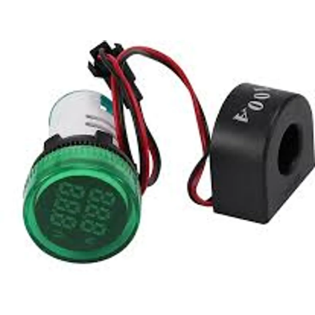 Sinalizador LED amperímetro 0-100A + Voltímetro 50-500V AC - Ø22mm - verde
