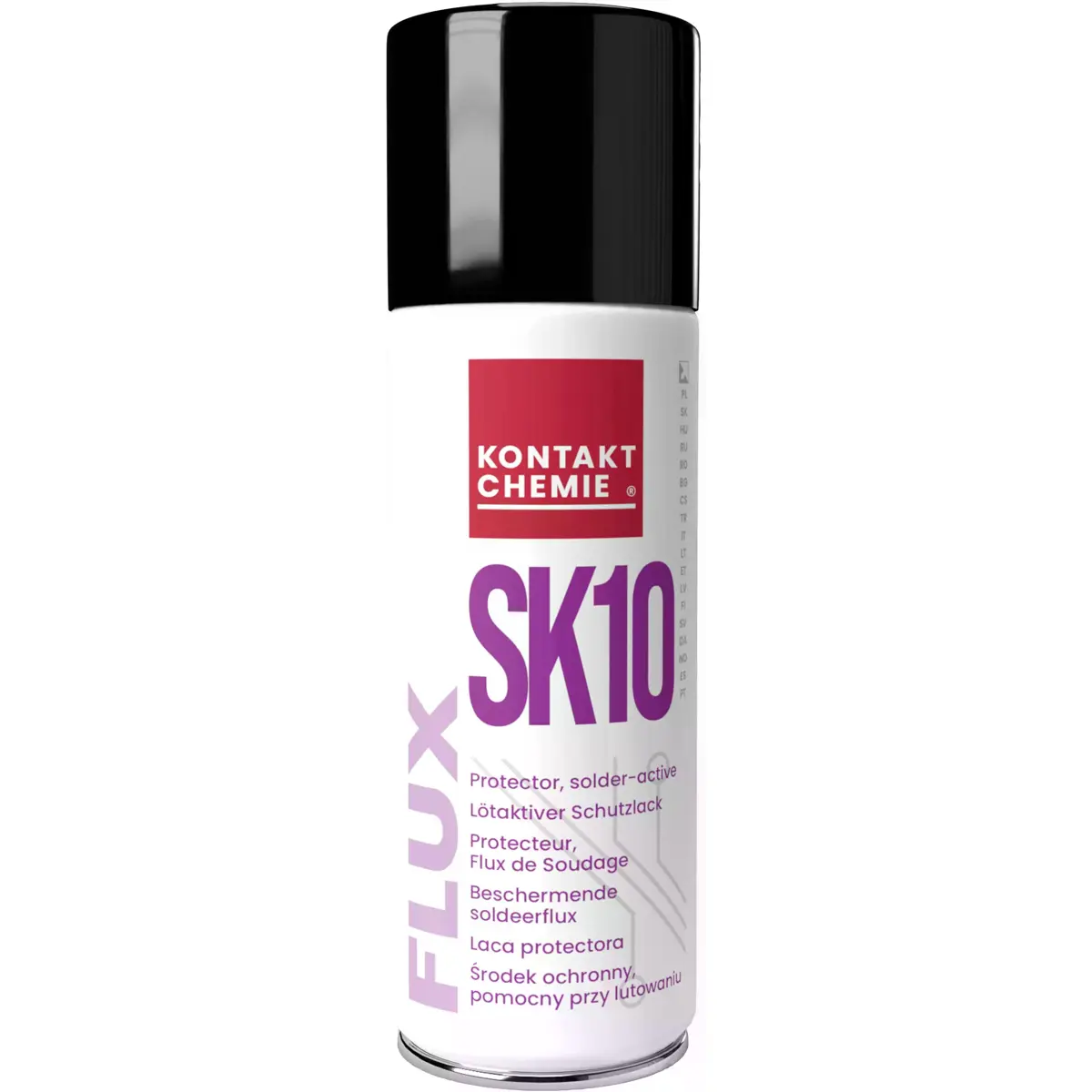 O FLUX SK 10 (originalmente chamado também de LOTLACK SK10) baseia-se na resina natural (colofonia) e, após a aplicação, cria uma camada fina. Essa camada facilita significativamente a soldagem e ao mesmo tempo protege da corrosão. É por isso que o FLUX SK 10 tem amplas possibilidades de uso como agente para proteção temporária e melhoria significativa da soldabilidade de PCBs, vários contatos, conjuntos de cabos, terminais de baterias,…