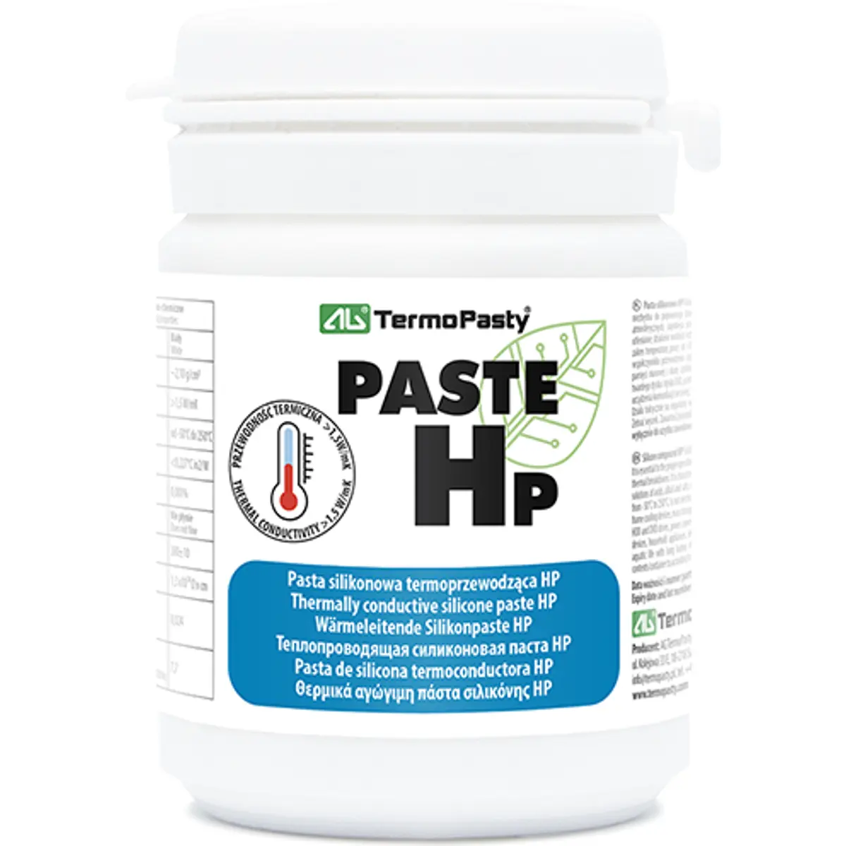 A pasta condutora térmica HP é necessária para o funcionamento correcto de qualquer tipo de sensor de temperatura. Protege contra as condições climatéricas e evita a ruptura. Caracteriza-se por uma muito boa resistência química à oxidação, soluções aquosas de ácidos, álcalis e sais, dióxido de enxofre e amoníaco. Tem uma gama muito ampla de temperaturas de trabalho. Condutibilidade térmica > 1,5 W/mK.