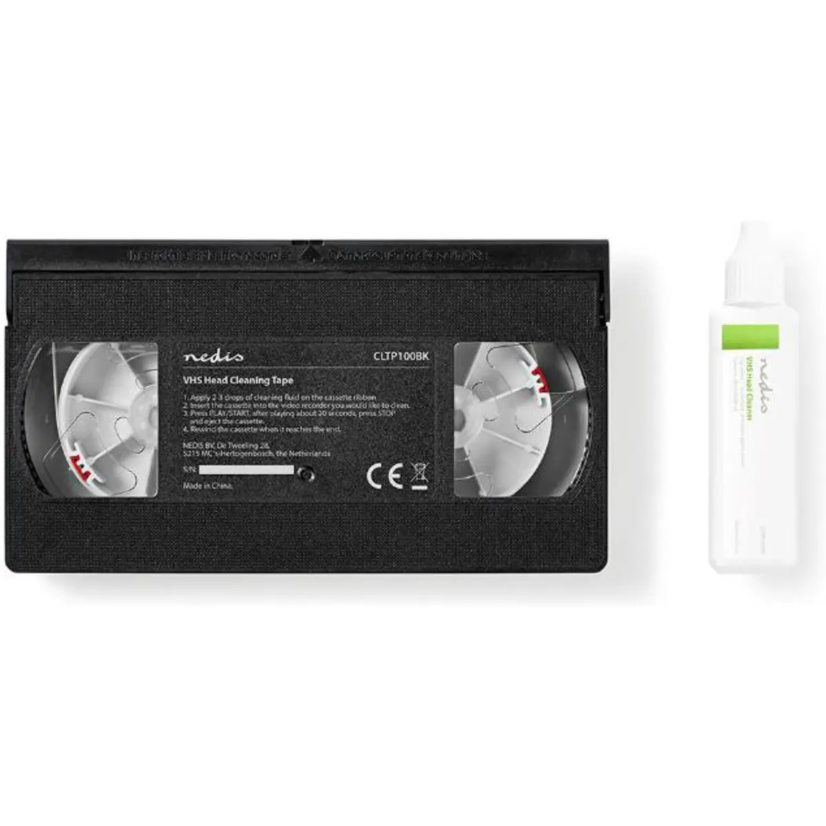 Nedis CLTP100BK - Cassete de limpeza VHS c/ liquido de limpeza 20ml
