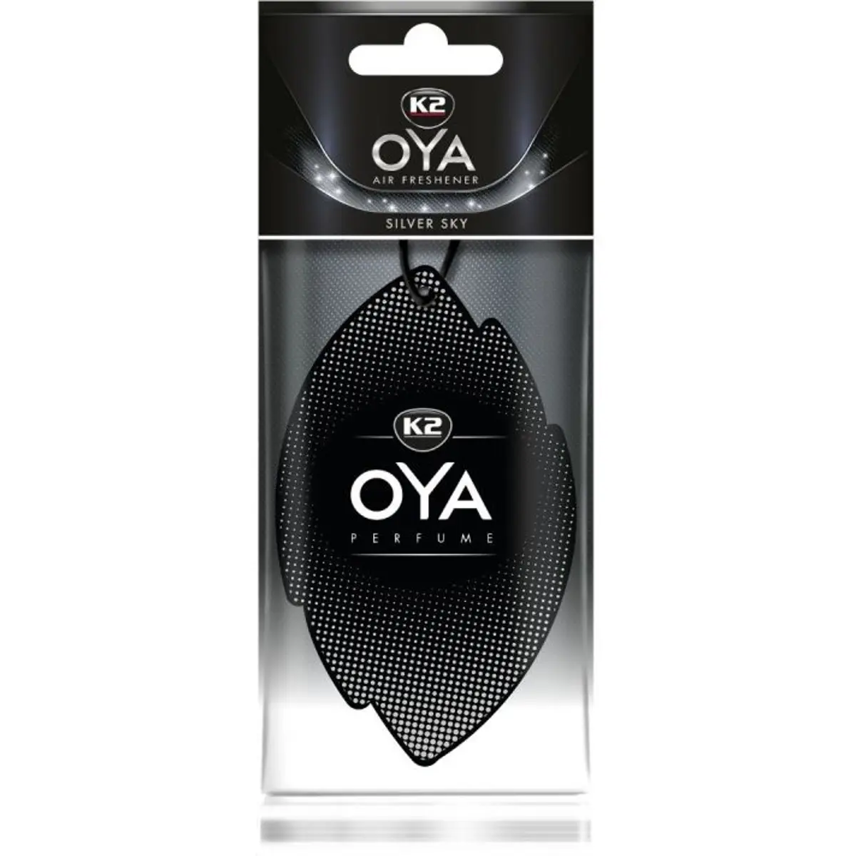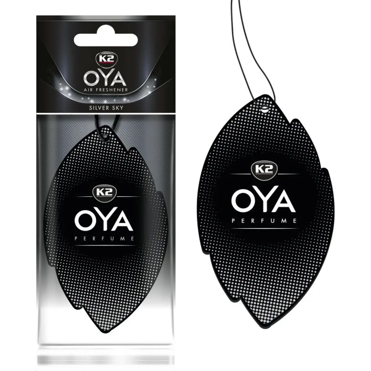 K2 OYA é um ambientador automóvel de forma e aroma originais, criado com notas aromáticas especialmente selecionadas, inspiradas em perfumes de marca.