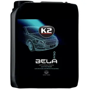 K2 BELA PRO, como uma rainha da neve, cobre a superfície do carro com uma densa e fofa camada de espuma ativa branca.