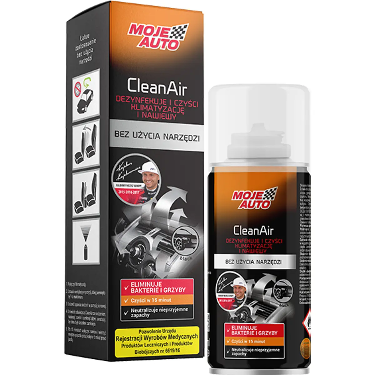 Moje Auto CleanAir é a solução ideal para eliminar odores desagradáveis do sistema de climatização e do interior do automóvel. O produto foi desenvolvido para ser fácil e rápido de utilizar. Graças à sua fórmula especial, pode cuidar da limpeza do sistema de ventilação sem esforço e sem necessidade de ferramentas adicionais. Opte por uma desinfecção eficaz e desfrute de um aroma fresco e duradouro de carro novo.