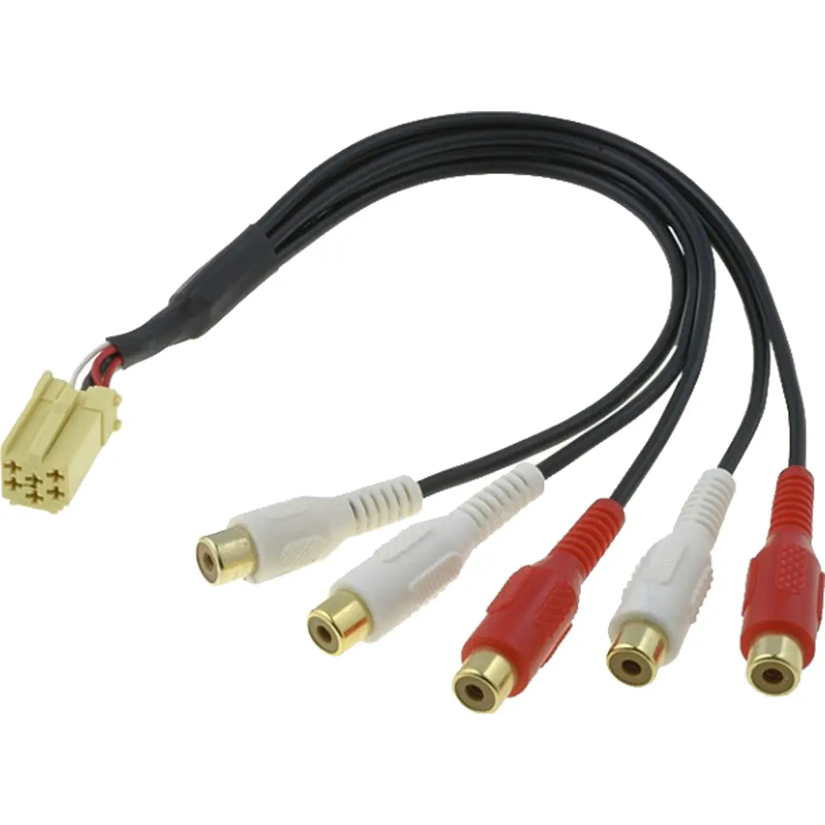 Cabo adaptador mini-ISO amarela saída 4xRCA + 1xRCA(woofer)
