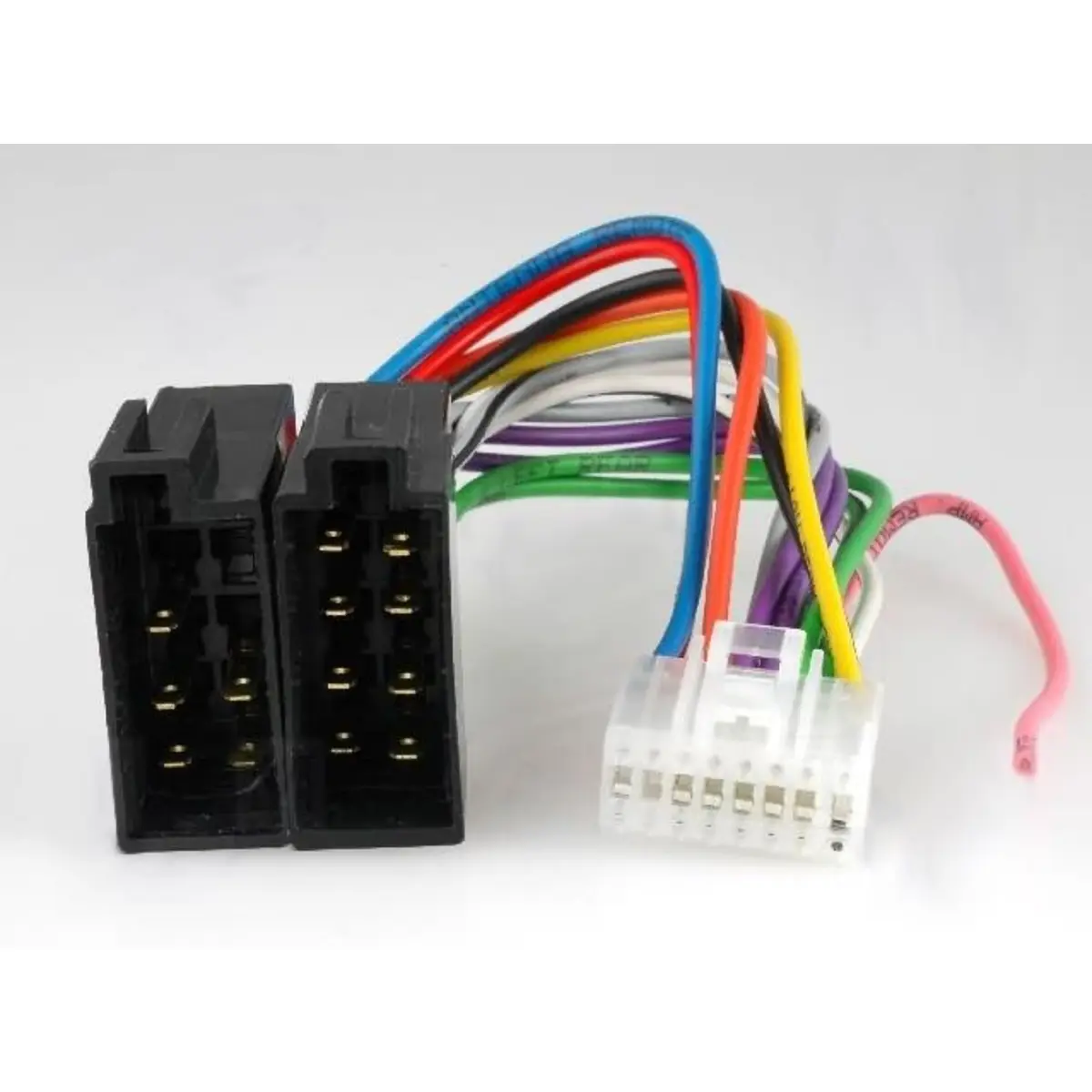 Adaptador ISO macho para autorádio, compatível com os modelos indicados: 7513, 7514, 7515, 7515R, 7517, 7521, 7521R, 7805, 7806, 7807, 7807R, 7816, 7817, 7818, 7834. Facilita a ligação entre rádio e painel, assegurando encaixe adequado e funcionamento estável, sem necessidade de alterações ao cabeamento.