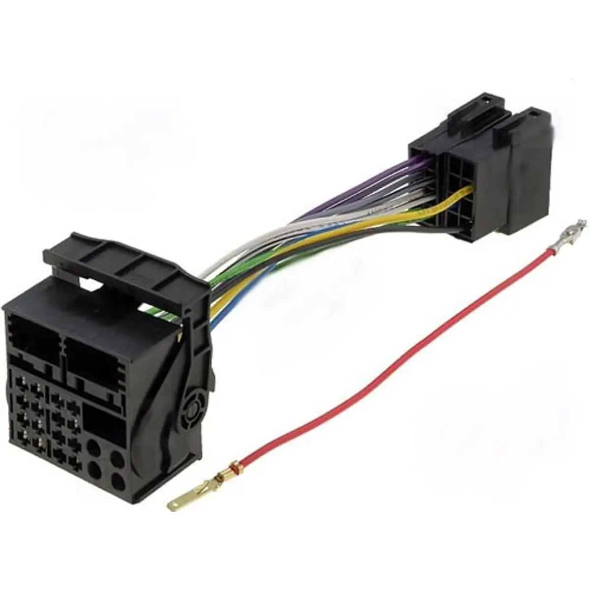 Adaptador para autorádio compatível com vários modelos Mercedes, incluindo A-Class, B-Class, C-Class, CLK, CLS, ML, R-Class, S-Class e SL, usando conectores ISO macho. Ideal para substituir ou atualizar a unidade de rádio, garantindo uma instalação estável sem modificações significativas no veículo. Este adaptador facilita a integração entre o rádio e o painel original, mantendo a estética do interior. Compatível com os modelos listados, proporcionando uma solução prática para proprietários que desejam manter o sistema original de som.