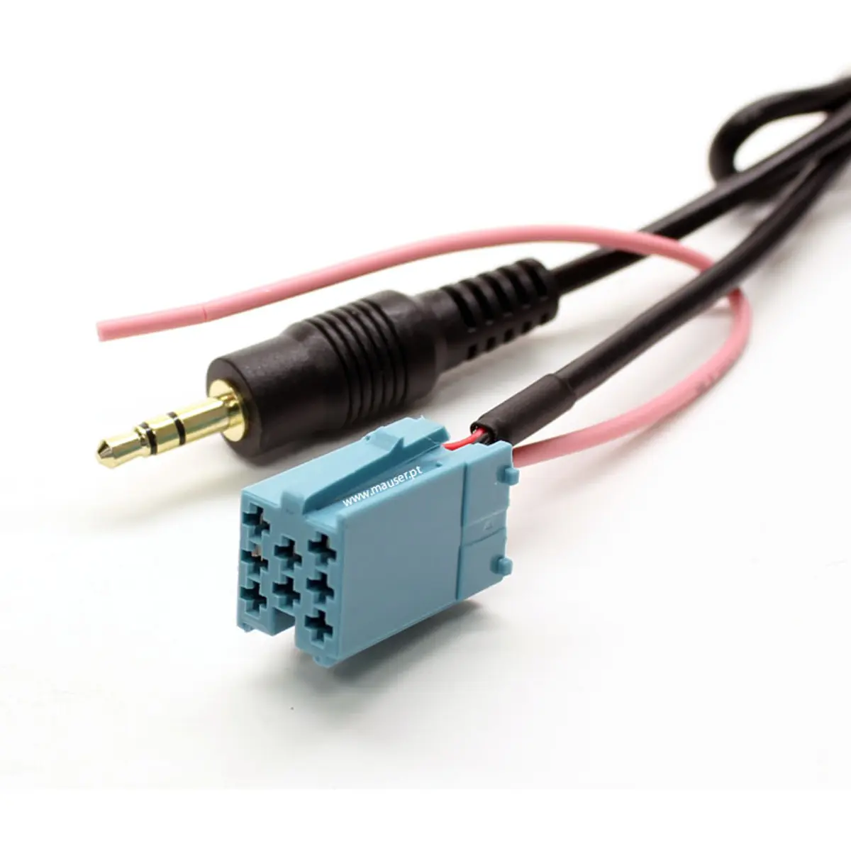 Adaptador de entrada AUX para rádio automóvel com conector jack de 3,5 mm. Permite ligar fontes de áudio externas através da porta AUX, compatível com rádios que suportam jack de 3,5 mm. Fornece alimentação de 12V e controlo remoto via fio rosa, facilitando o controlo de volume e reprodução sem abrir o rádio. Ideal para melhorar a qualidade de som em sistemas de áudio automóvel, incluindo rádios Becker, Blaupunkt e VDO com entrada auxiliar.