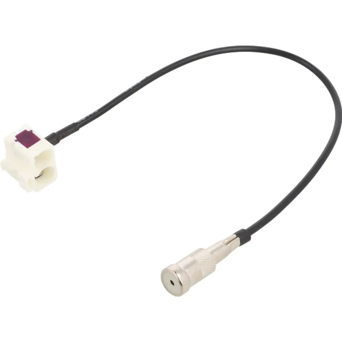 Adaptador de rádio para antena com interface Fakra para ISO fêmea em ângulo de 90°, permitindo a ligação de antenas a rádios automotivos. Compatível com Audi equipado com o sistema de navegação RNS-E.