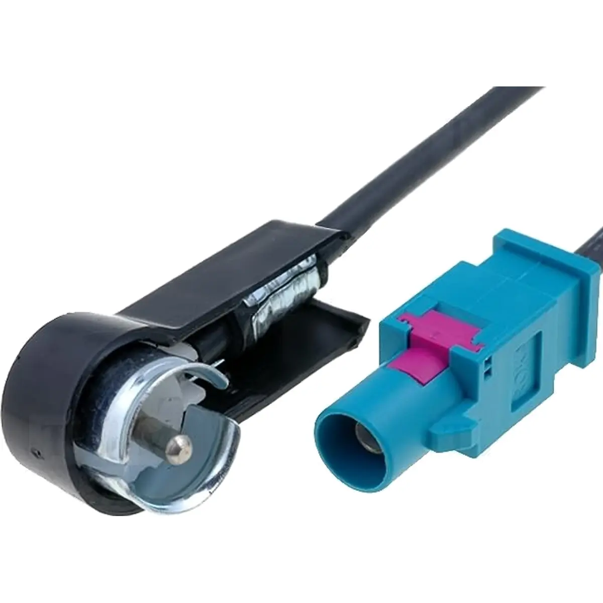 Adaptador de antena automóvel com conectores Fakra e ISO macho, compatível com Audi (2002->), Fiat (2008->), Mercedes (2002->), Peugeot (2002->), Seat (2002->), VW (2002->) e Skoda (2002->).