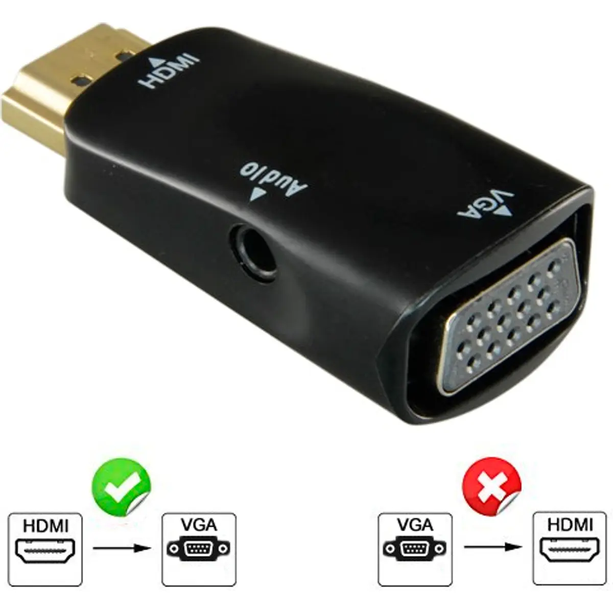 Este dispositivo converte o sinal HDMI para o sinal VGA + 2 canais Audio (Stereo). É uma solução ideal para ligar a um monitor VGA, por exemplo, as consolas de jogos, o cinema em casa com saída HDMI.