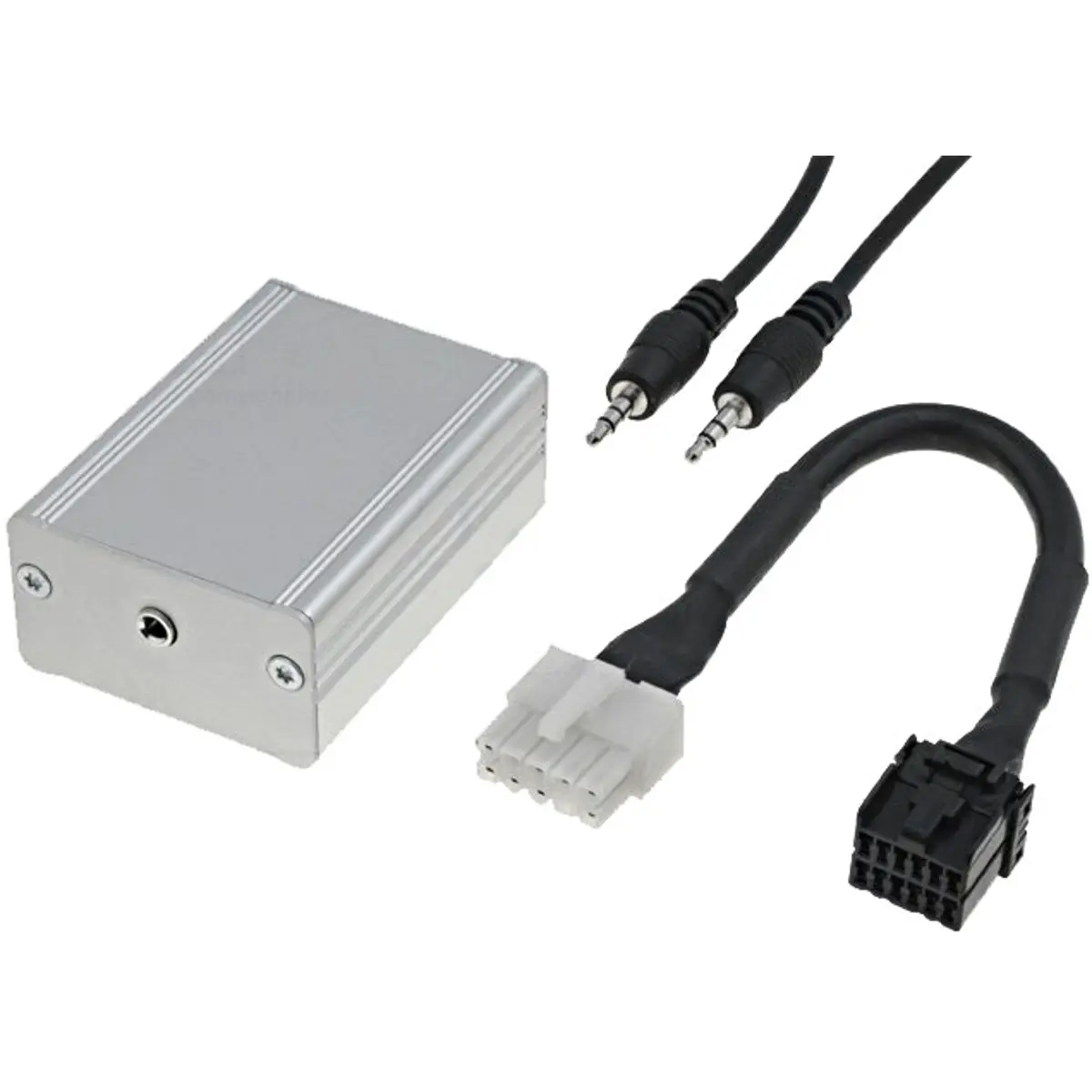 Adaptador de entrada AUX para rádios Ford, compatível com os modelos 4050, 5000, 6000 e 7000. Fornece uma tomada de 3,5 mm para ligar dispositivos de áudio externos, através da saída para o conector da caixa de CD, com controlo de volume integrado no rádio. Ideal para ampliar a compatibilidade de áudio sem substituir a unidade original.