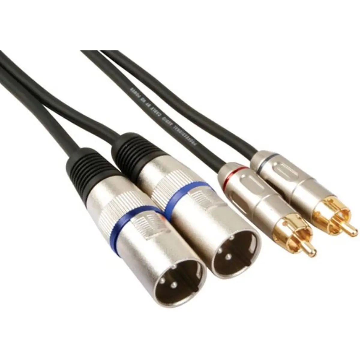 HQ Power PAC150 - Cabo stereo 2x XLR 3 pinos macho - 2x RCA macho 1.0m - preto