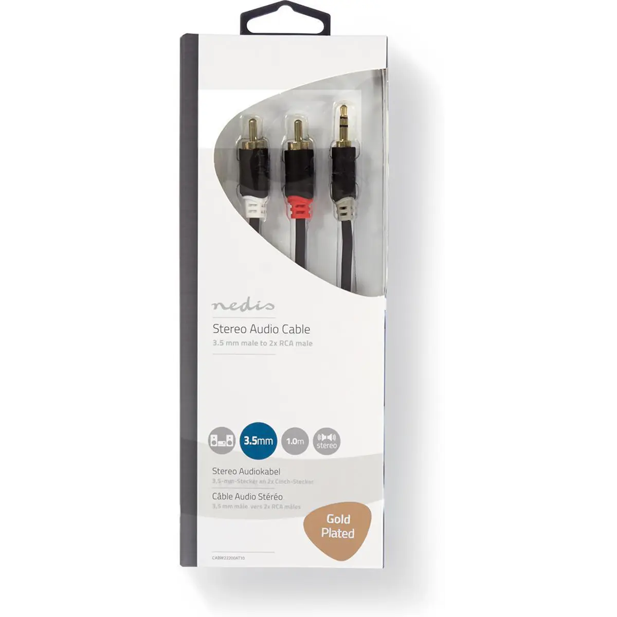 Nedis CABW22200AT10 - Cabo Jack 3.5mm Stereo - 2x RCA macho [Gold Plated] - 1.0m