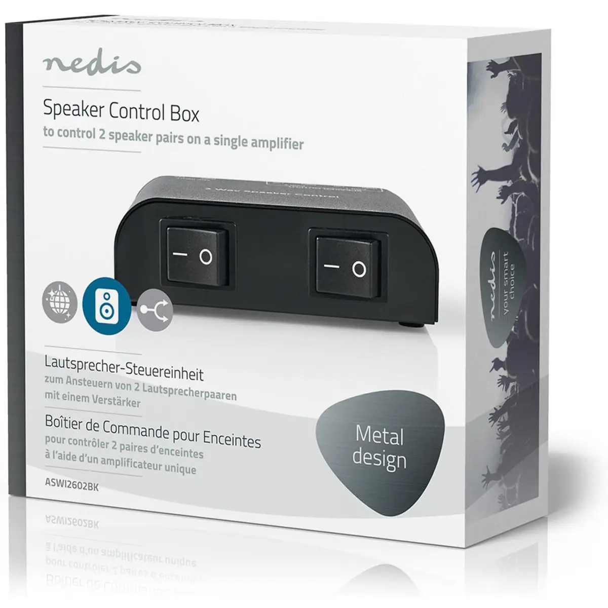 Nedis ASWI2602BK - Controlador de altifalantes de 2 pares (2x L+R) - [ligações mola]