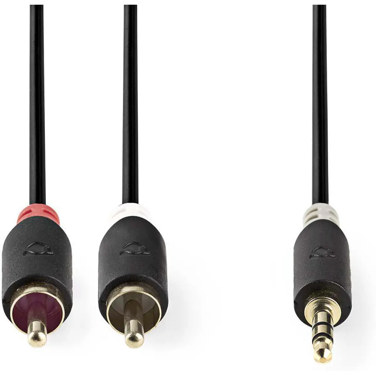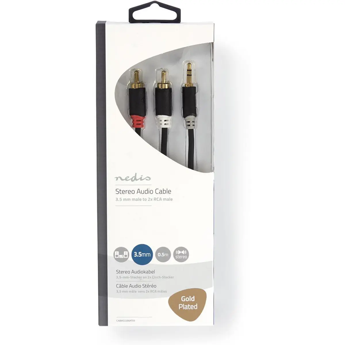 Nedis CABW22200AT05 - Cabo Jack 3.5mm - 2x RCA macho stereo [Gold Plated] - 0.5m