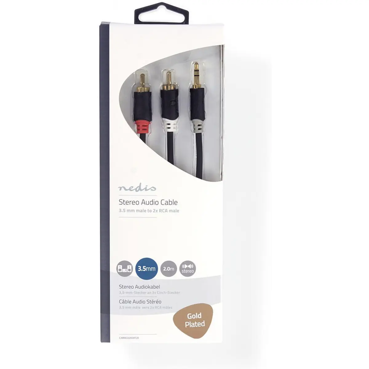 Nedis CABW22200AT20 - Cabo Jack 3.5mm - 2x RCA macho stereo [Gold Plated] - 2.0m
