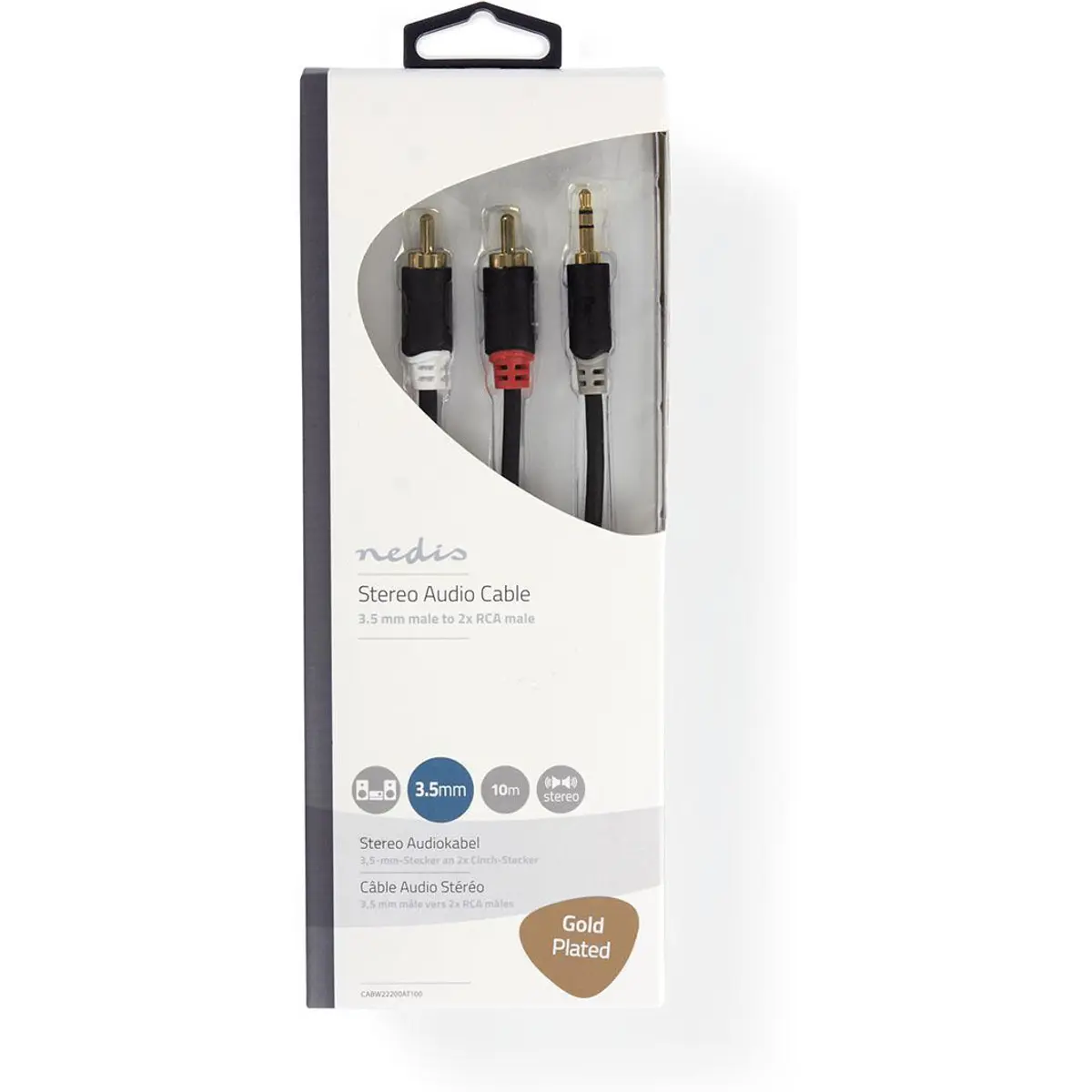 Nedis CABW22200AT100 - Cabo Jack 3.5mm - 2x RCA macho stereo [Gold Plated] - 10m
