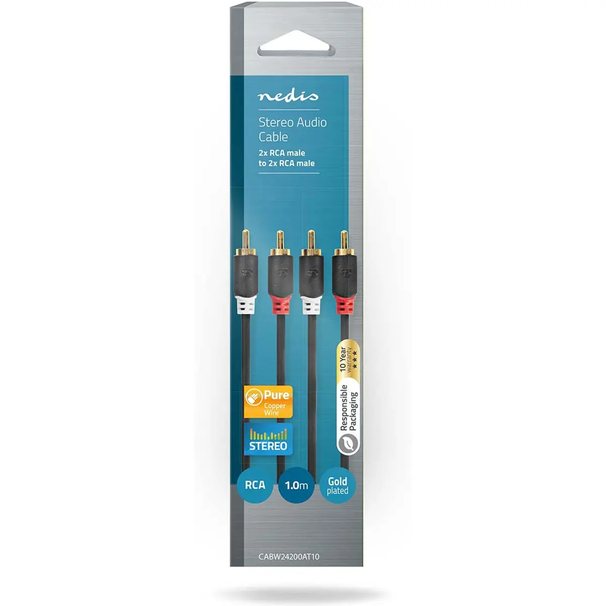 Nedis CABW24200AT10 - Cabo 2x RCA macho - 2x RCA macho [Gold Plated] - 1.0m