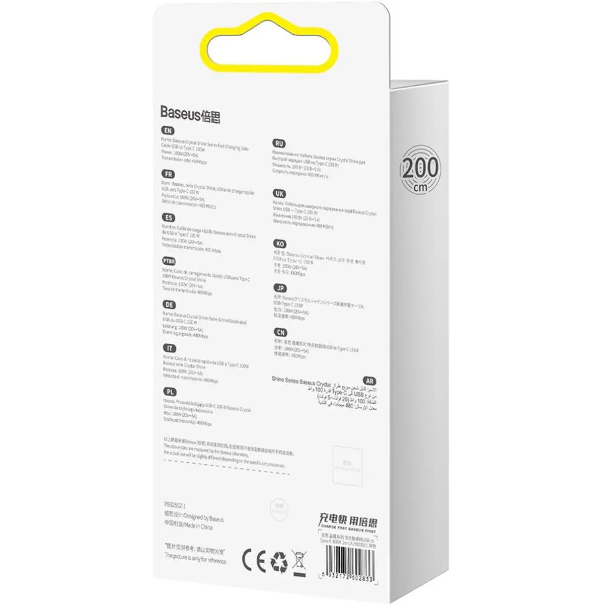 O Baseus Crystal Shine é um cabo equipado com conectores USB-A para USB-C. O cabo foi concebido para proporcionar o maior conforto na utilização quotidiana. A trança de nylon garante a segurança na utilização do cabo e a sua longa duração.