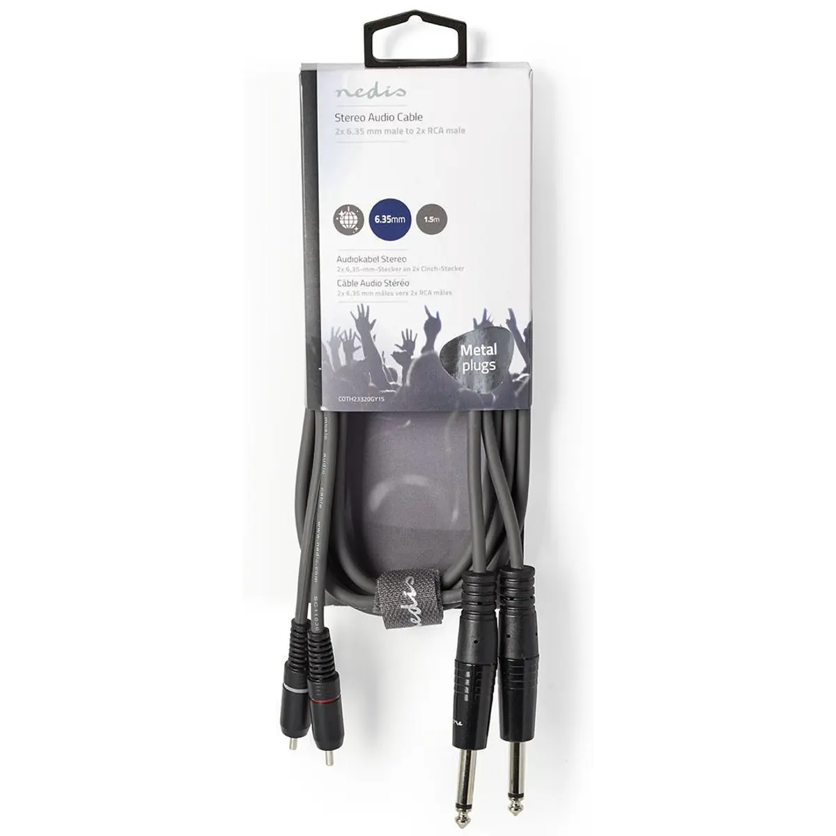 Nedis COTH23320GY15 - Cabo áudio 2xRCA macho - 2x Jack6.3mm mono macho - 1.5m
