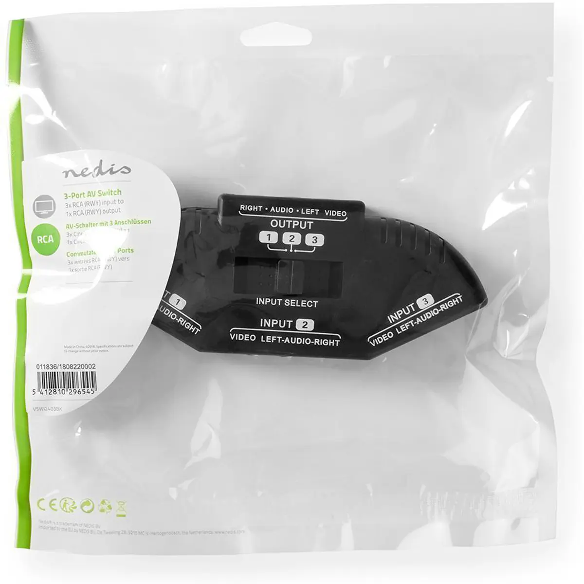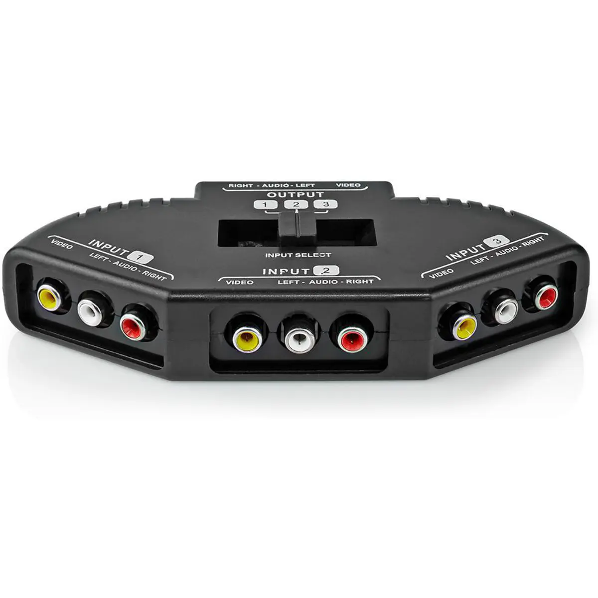 - Este conversor pode comutar 3 grupos de entrada de sinal AV de vídeo e áudio e 1 grupo de saída para o televisor para sua utilização.